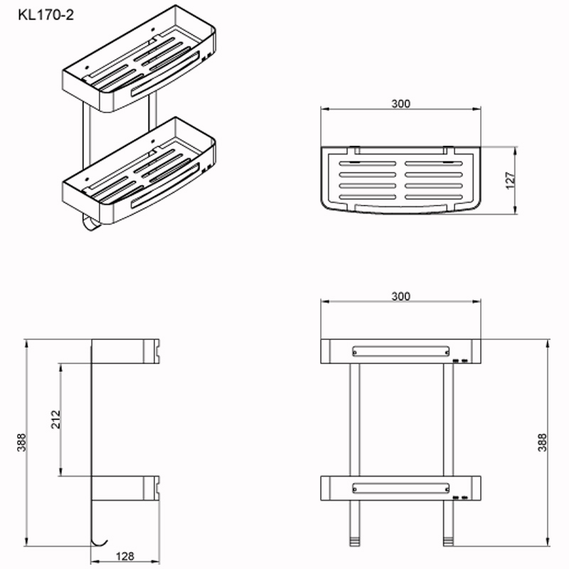 Полка прямоугольная AZARIO двухэтажная, черный матовый (AZ-170-2B)