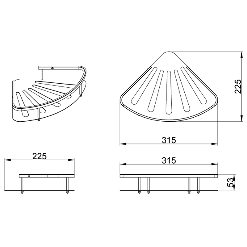 Полка угловая одноэтажная Azario подвесная, хром (AZ-836)