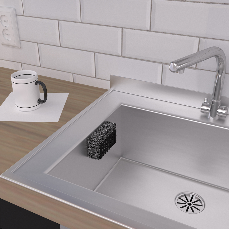 Изделие экономит пространство, способствует быстрому высыханию губок и позволяет избежать неприятного запаха.