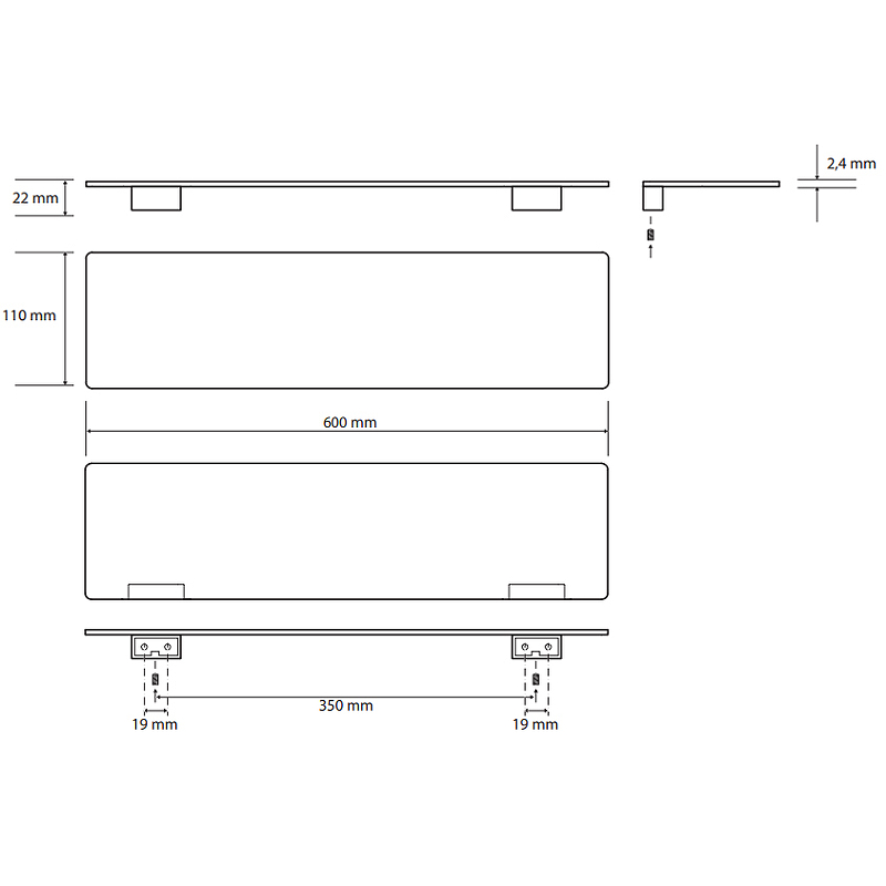 - Размеры (ШхВхД): 600х22х110 мм.