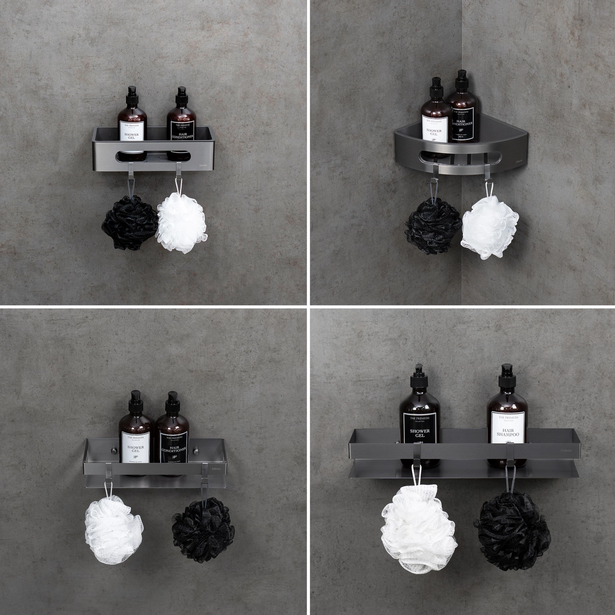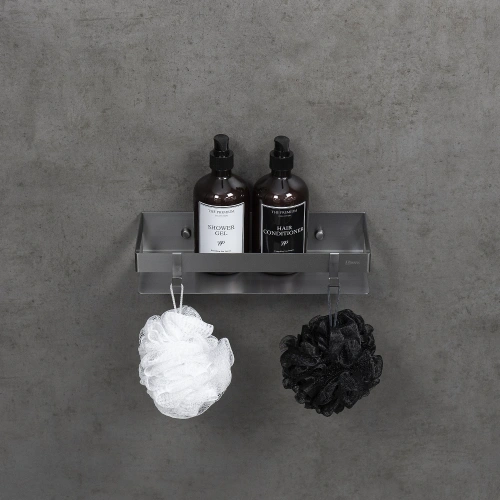 Полка для душа прямая Lemark SHELF LINE 300 мм из нерж. стали с крючками, графит (9776051)