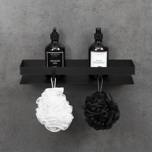 Полка для душа прямая Lemark SHELF LINE 400 мм из нерж. стали с крючками, черный (9772053)