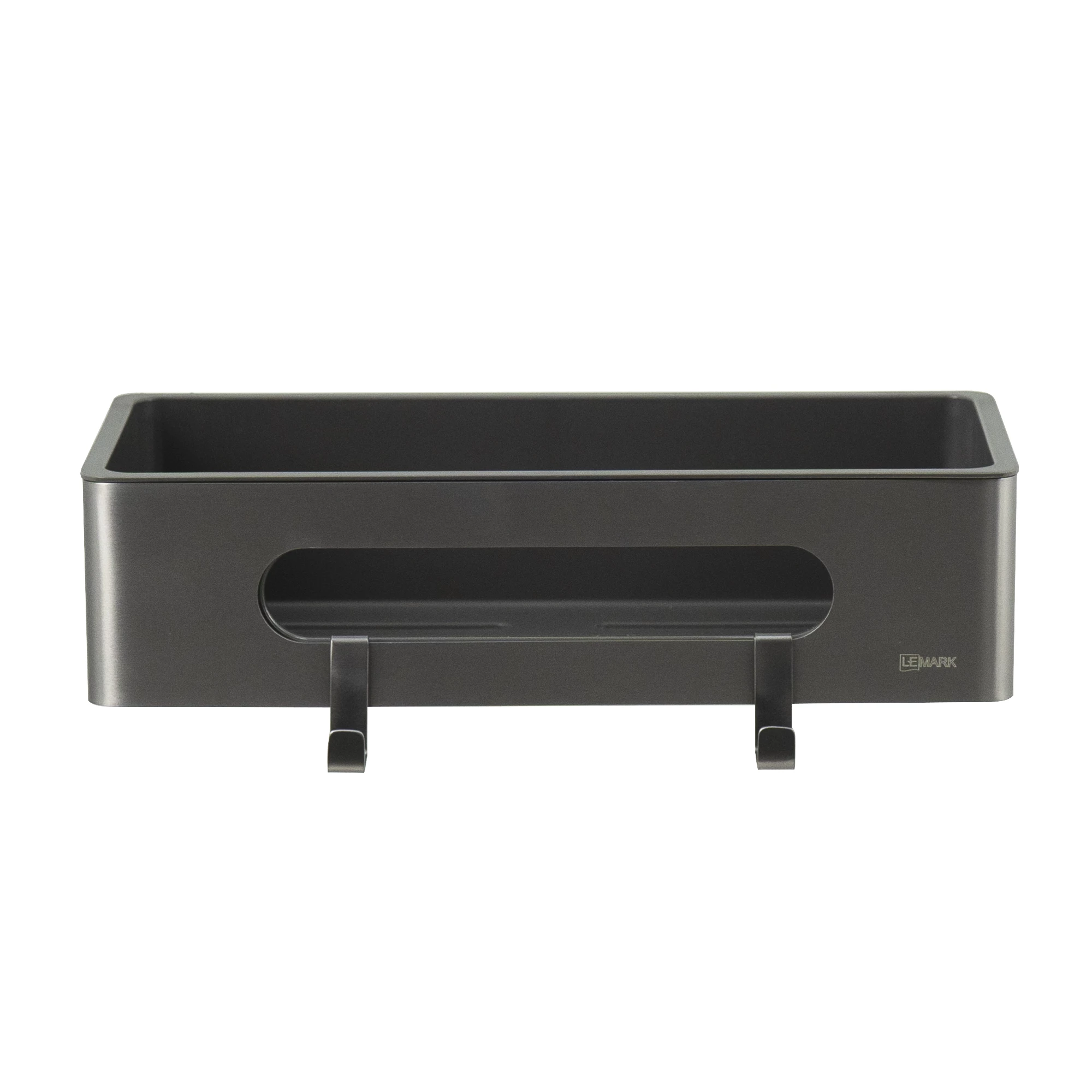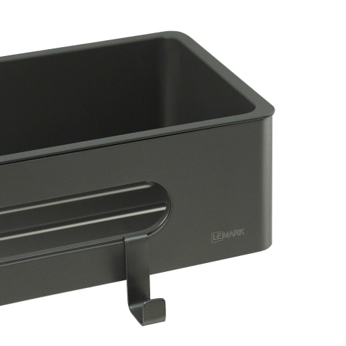 Полка для душа прямая Lemark SHELF LINE из нерж. стали с крючками, графит/вставка-пластик графит (9776045)