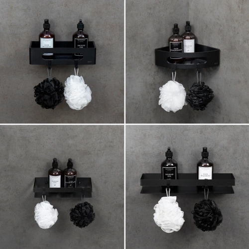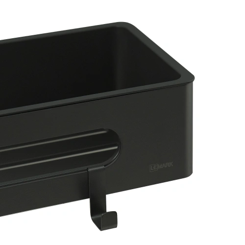 Полка для душа прямая Lemark SHELF LINE из нерж. стали с крючками, черный/ вставка-пластик черный (9772044)