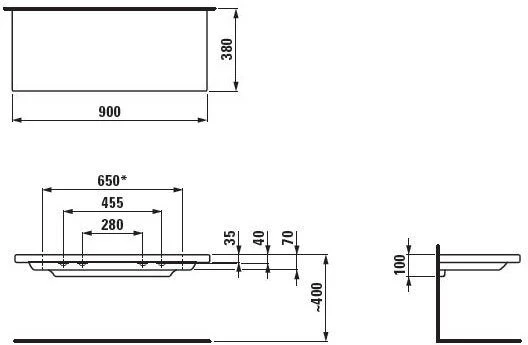 Laufen Living Square Керамическая полка навесная 900х380x35 (100) мм, обрезается до 650 мм, белый