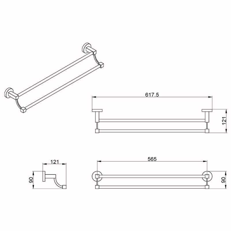 Полотенцедержатель AZARIO NESSY трубчатый двойной 58,5 см, хром (AZ-73102)