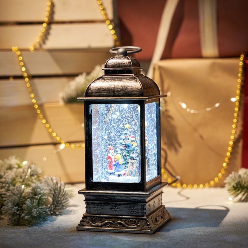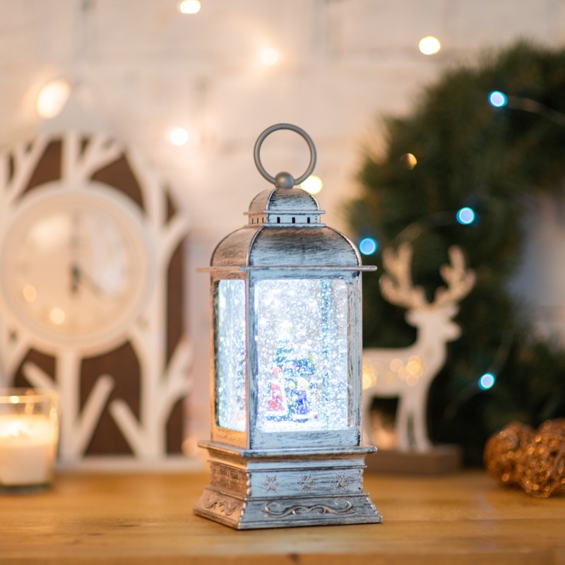 Декоративный фонарь с эффектом снегопада и подсветкой Рождество, белый