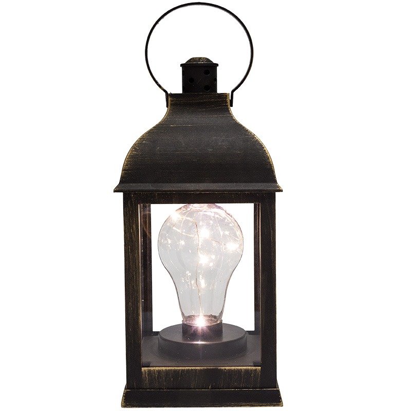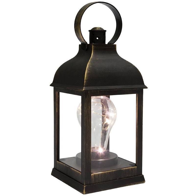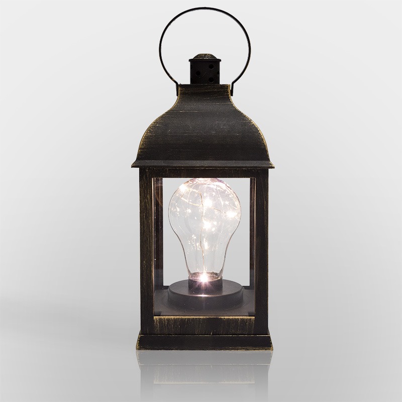 Декоративный фонарь с лампочкой — стильное, оригинальное интерьерное украшение, которое выгодно подчеркнет уникальный стиль обстановки и создаст уют. В бронзовом корпусе находится декоративный элемент в виде лампы накаливания, но вместо вольфрамовой спирали за подсветку отвечают светодиоды, излучающие белый свет теплого оттенка. Светодиоды получает питание от 3 батареек типа ААА и экономно расходуют заряд. Фонарь имитирует работу настоящей лампочки, даря тепло и комфорт окружающим.