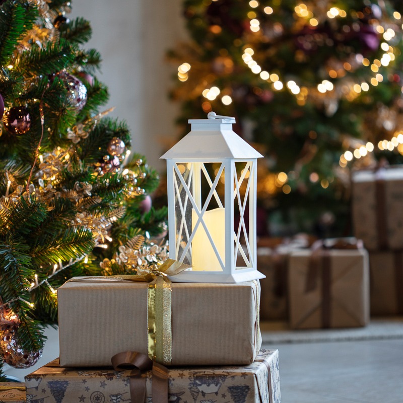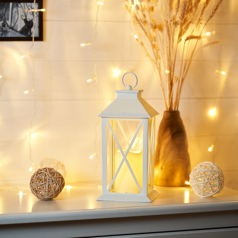 Декоративный фонарь со свечкой в резном корпусе — оригинальное новогоднее украшение интерьера, которое подарит ощущение зимней сказки и рождественских чудес. В корпусе белого цвета в стиле «прованс» за стеклом находится главный декоративный элемент — пластиковая свеча, которая излучает теплый белый свет. 1 диод получает питание от 3 батареек типа ААА и экономно расходует заряд. Для управления подсветкой на корпусе предусмотрена кнопка ON/OFF. Кольцо в верхней части позволяет подвешивать фонарь в любом удобном месте.