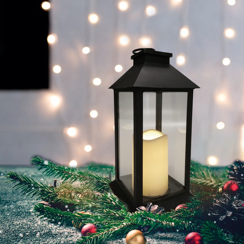 Декоративный фонарь со свечой 14x14x29 см, черный корпус, теплый белый цвет свечения NEON-NIGHT