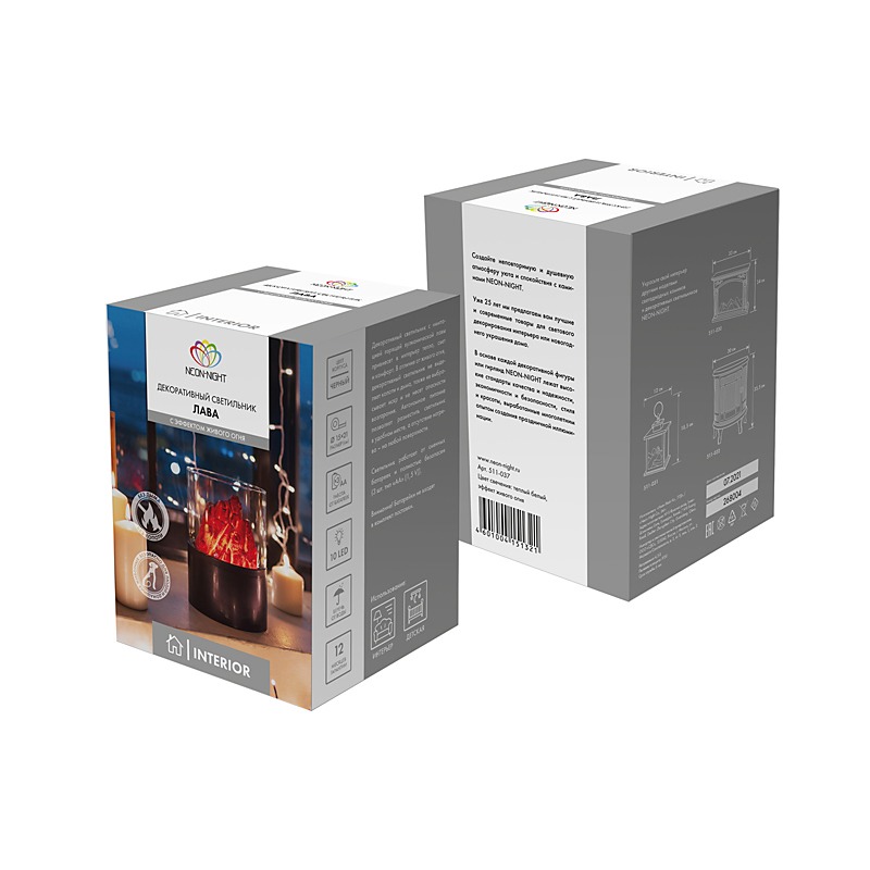 Декоративный светильник «Лава» имеет размеры 21 см в высоту и 15 см в диаметре. Причудливая игра огня в раскаленной горной породе, медленно тлеющая лава создают ощущение комфорта и тепла, заставляя подолгу любоваться великолепным зрелищем. Светильник получает питание от 3 батареек типа АА. Автономность — важная характеристика, которая дает независимость от стационарной розетки и гарантирует безопасность. Интерьерный декор можно использовать в качестве ночника, поскольку светодиоды экономно расходуют заряд.