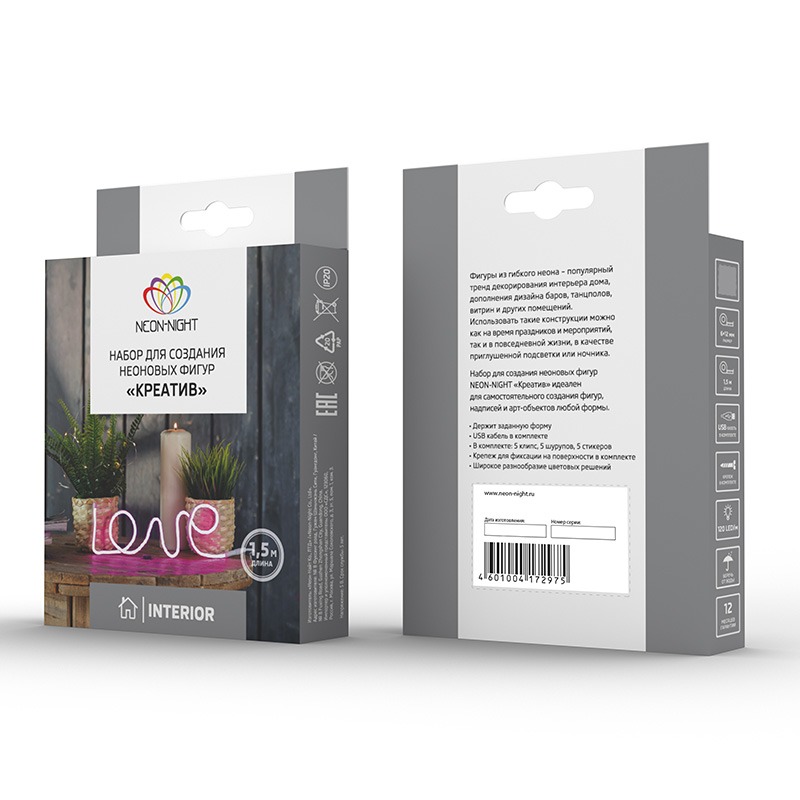 Набор для создания неоновых фигур «Креатив» со степенью защиты IP20 предназначен для использования в помещениях со стандартными условиями: низким уровнем влажности и температурой воздуха 0...+40 °С. 180 диодов, равномерно расположенных по всей длине изделия, светятся зеленым. Матовая поверхность трубки мягко рассеивает яркие пучки, создавая комфортное для глаз освещение. Неон отлично подходит для декорирования квартир, частных домов, общественных заведений. Гибкая конструкция позволяет создавать креативные арт-объекты.