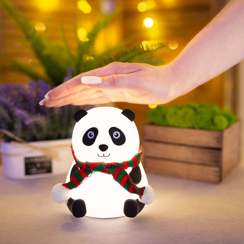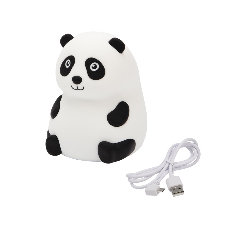 Силиконовый ночник «Панда» выполнен из мягкого материала, приятного на ощупь. Забавный персонаж придется по душе каждому ребенку, станет его лучшим другом, который поможет быстро и крепко заснуть. Ночник светится теплым белым цветом, плавно меняет оттенки RGB-диодов или светится одним цветом из 256 вариантов. Изделие не нагревается, не имеет неприятного запаха, острых углов и опасных деталей. Ночник заряжается через USB-порт, одного объема аккумулятора хватает на 9-10 часов.