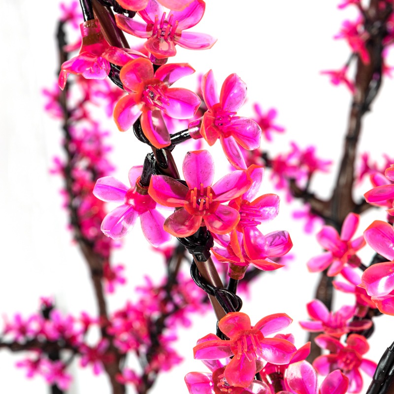 Светодиодное дерево Сакура высотой 2,4 метра – необычный интерьерный и экстерьерный декор, который поразит воображение эффектным свечением множества маленьких цветов, рассыпанных на тонких ветках. <br> Ствол и крона выполнены из черного ПВХ и имеют сборную конструкцию. Композиция размещается на металлическом основании, в котором есть отверстия под анкерные болты. 1728 диодов розового свечения отличаются экономичностью, безопасностью и долговечностью. <br> Изделие надежно защищено от влаги и пыли по стандарту IP65 — подходит для использования как в помещениях, так и на улице.