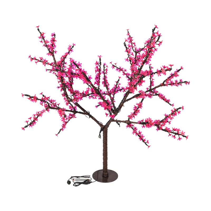 Светодиодное дерево Сакура высотой 1,5 метра станет прекрасным украшением квартиры, частного дома, уличной площадки, террасы кафе или ресторана, дополнит декоративную композицию фотозоны, развлекательного центра, салона красоты. <br> Защита IP65 позволяет размещать изделие как внутри помещений, так и на улице: внутренние компоненты надежно изолированы от влаги и пыли. <br> Раскидистая крона диаметром 1,8 метра состоит из изящных ветвей, с расположенными на них пластиковыми цветами японской вишни. 864 светодиода, которые излучают яркий розовый свет, эффектно выделяют лепестки. <br> Подсветка работает в постоянном режиме.