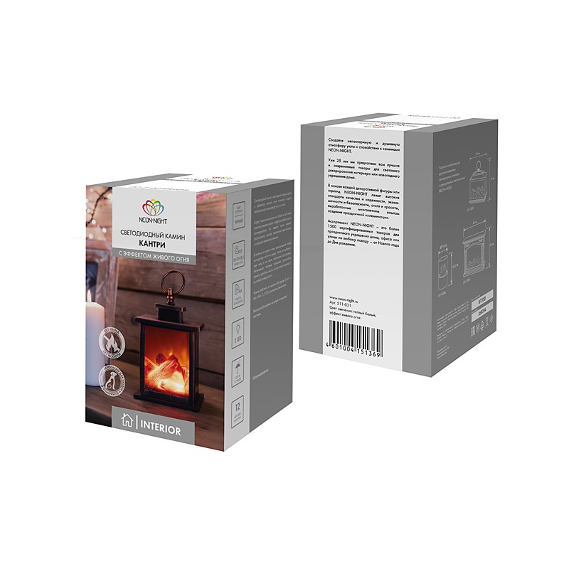 Светодиодный камин Кантри с эффектом живого огня 12х12х18,5 см, батарейки 3хАА (не в комплекте)