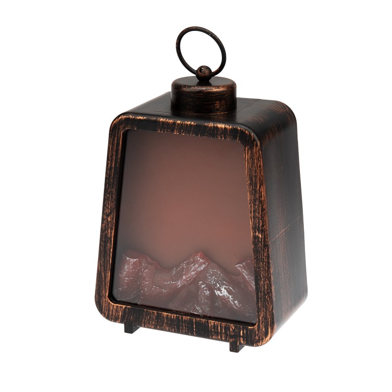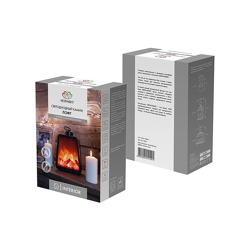 Светодиодный декоративный камин «Лофт» NEON-NIGHT выполнен в виде фонаря классической формы с кольцом для подвешивания. Корпус создан из прочного гипоаллергенного ABS-пластика черного цвета и покрыт бронзовой краской с имитацией состаренной поверхности. За стеклом находится композиция из обугленных поленьев, которые подсвечиваются 3 долговечными яркими диодами теплого оттенка. За динамику свечения отвечает встроенный микрочип, создающий эффект тлеющих углей и движущегося огня. Декоративное изделие не выделяет тепла, копоти, не отбрасывает искр: может использоваться в спальнях и детских. Камин функционирует от 3 батареек типа С/LR14 (не входят в комплект), что обеспечивает его автономность и предоставляет возможность размещать в любом удобном месте. В комплекте поставляется USB-кабель для альтернативного подключения светильника. Переключатель ON/OFF расположен на задней стенке корпуса.