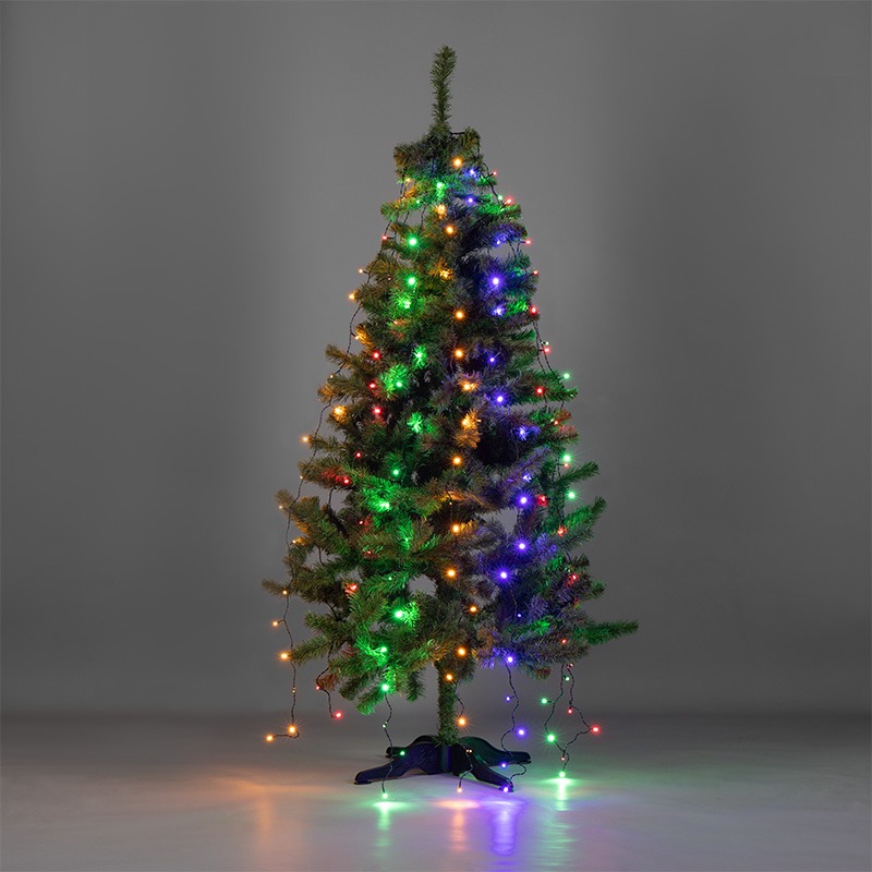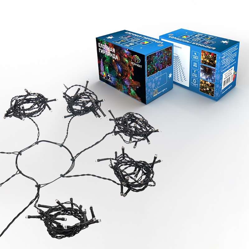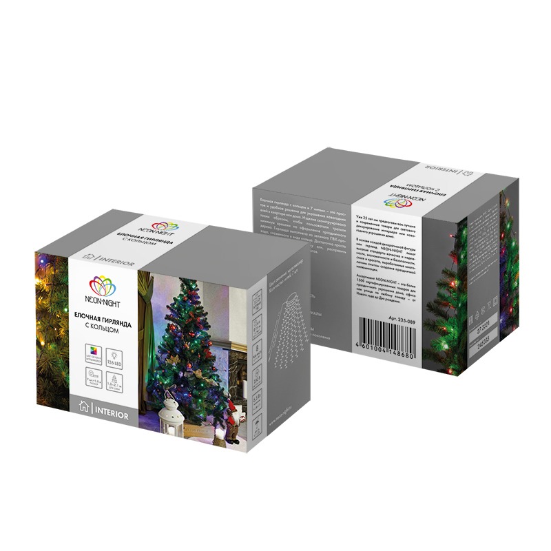 Елочная гирлянда с кольцом и 7 нитями по 1,8 м питается от электросети с напряжением 230 Вольт через трехметровый кабель. Штепсельная вилка совместима со всеми розетками. Гирлянда предназначена для украшения новогодних елок в интерьере. В конструкции 126 диодов, светящихся синим, зеленым, красным и желтым цветами. Главное преимущество изделия — простота использования: достаточно надеть кольцо на вершину ели и расправить нити — оригинальный праздничный декор готов. Диоды не нагреваются и подходят для оформления искусственных деревьев. Контроллер с 8 режимами позволяет менять динамику свечения в соответствии с обстановкой.