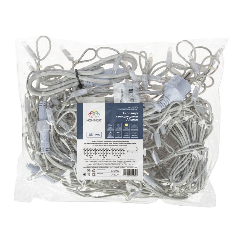 Гирлянда светодиодная Бахрома (Айсикл), 5х0,7м, 152 LED ТЕПЛЫЙ БЕЛЫЙ, белый КАУЧУК 2,3мм, IP67, постоянное свечение, 230В NEON-NIGHT (нужен шнур питания 315-001)