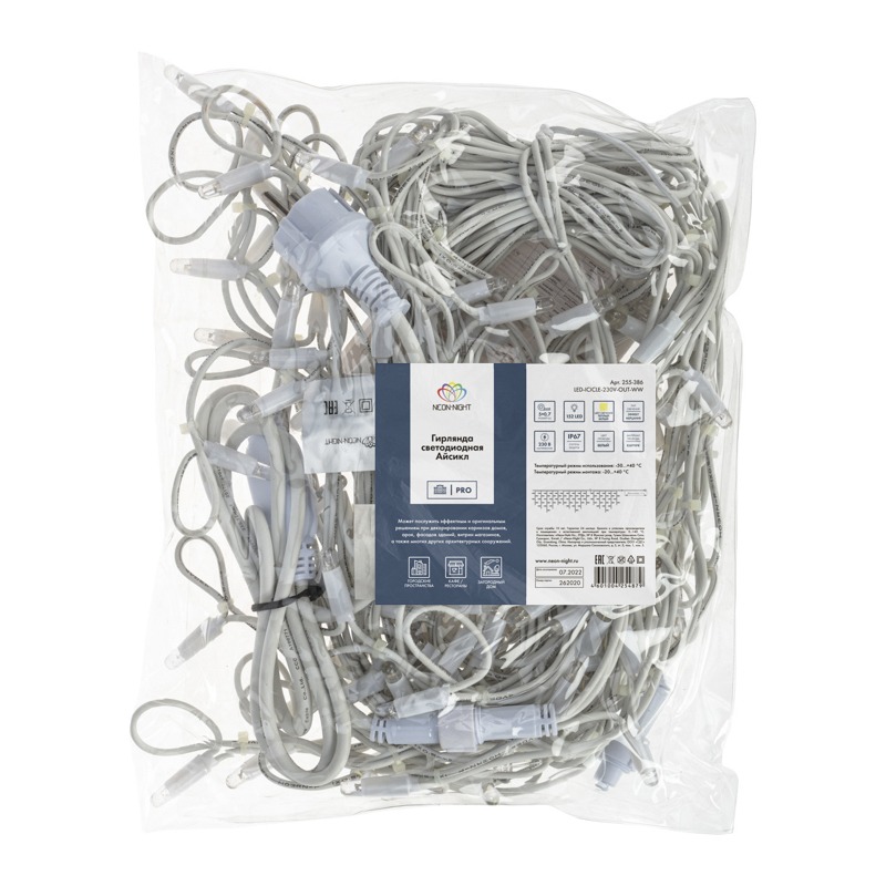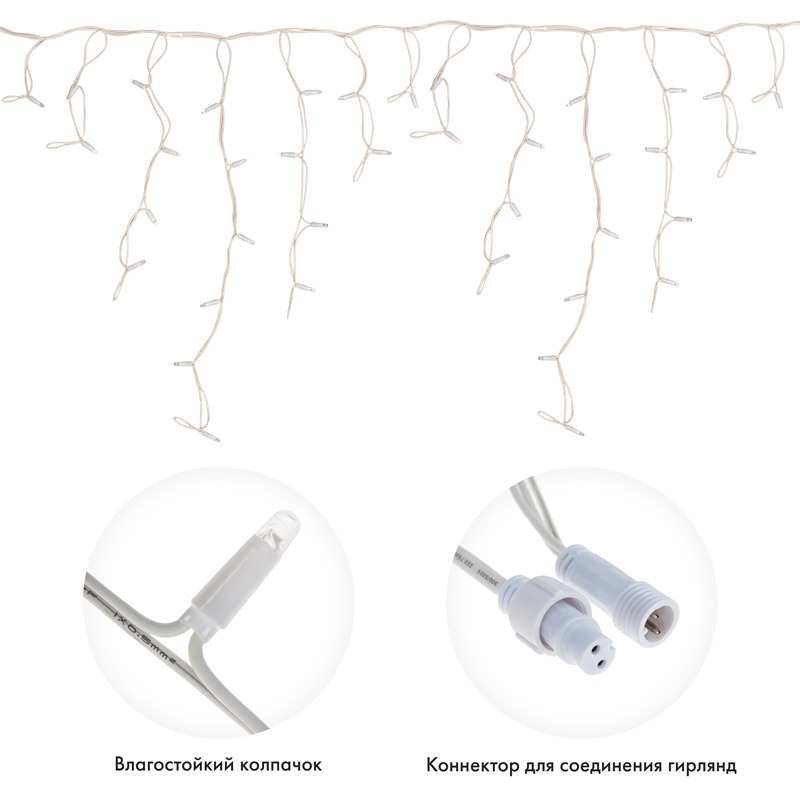 Гирлянда светодиодная Бахрома (Айсикл), 5х0,7м, 152 LED ТЕПЛЫЙ БЕЛЫЙ, белый КАУЧУК 2,3мм, IP67, эффект мерцания, 230В NEON-NIGHT (нужен шнур питания 315-001)