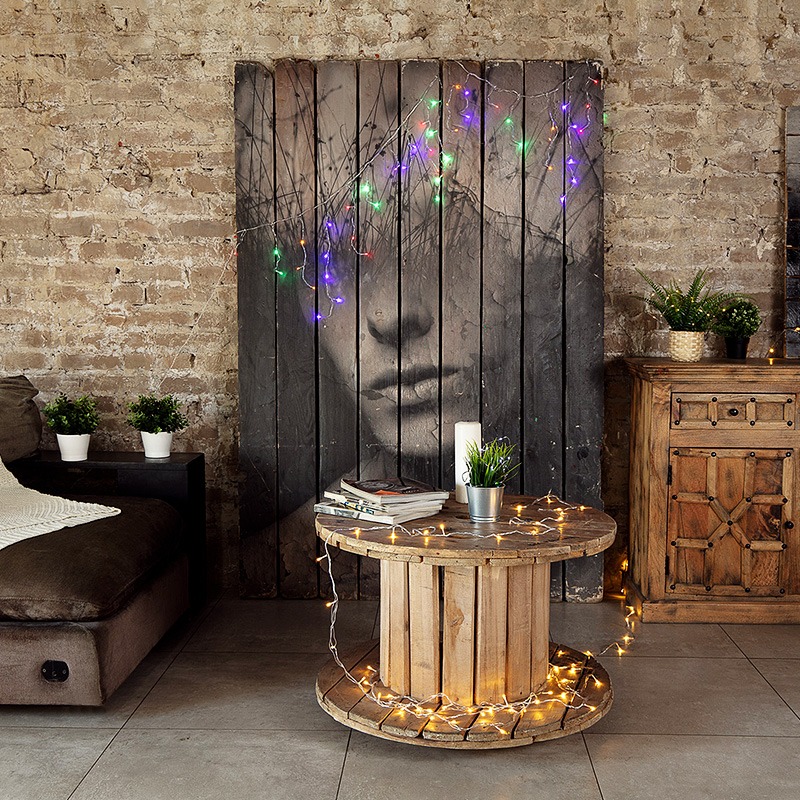Гирлянда «Айсикл» 1,8×0,5 м — эффектное светодиодное украшение для оконных проемов, гардин, карнизов, арок и других интерьерных объектов. Изделие предназначено для размещения внутри помещений с умеренной влажностью. Длина электрического кабеля в оболочке из прозрачного ПВХ составляет 3 метра, поэтому гирлянда не требует дополнительного удлинителя. 48 экономичных светодиодов светятся яркими разноцветными огоньками и управляются контроллером с 8 режимами.