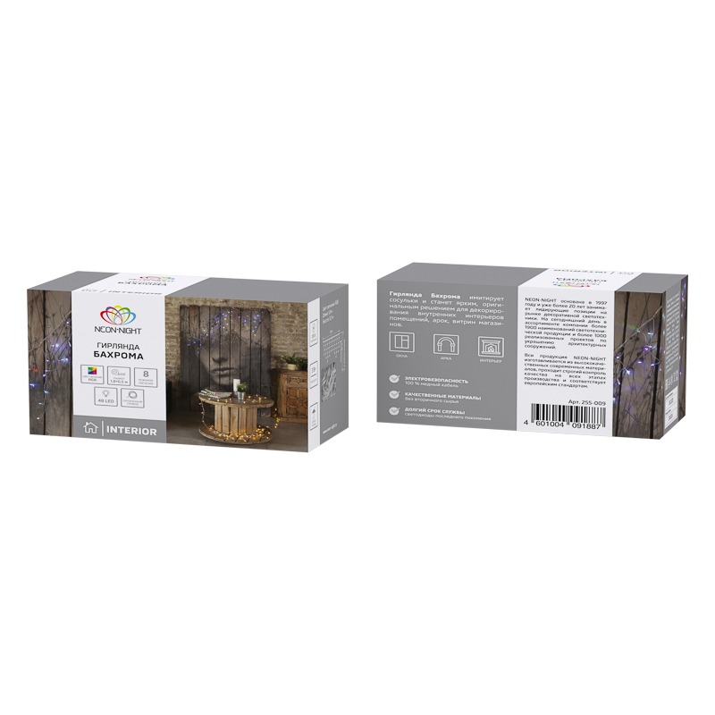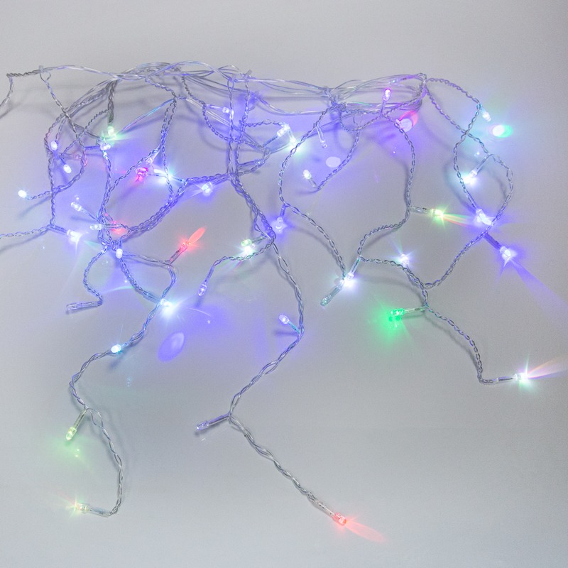 Гирлянда «Айсикл» 1,8×0,5 м представляет собой горизонтальный кабель в гибкой оболочке из прозрачного ПВХ, с расположенными на нем свисающими нитями длиной от 10 до 50 см. 48 светодиодов переливаются разноцветными огнями RGB (256 разных оттенков). Гирлянда в виде бахромы прекрасно подходит для декора гардин, окон, дверных проемов, отдельных интерьерных предметов и предназначена для использования в помещениях с умеренной влажностью.