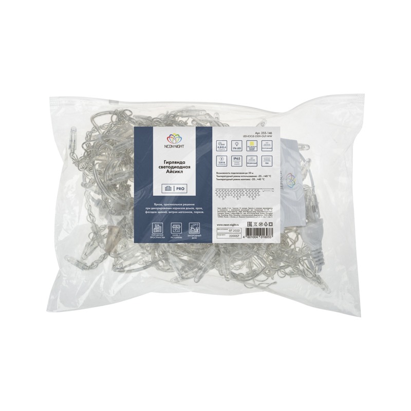 Данная гирлянда имеет Теплый белый цвет свечения и предназначена для использования как внутри помещения, так и снаружи.