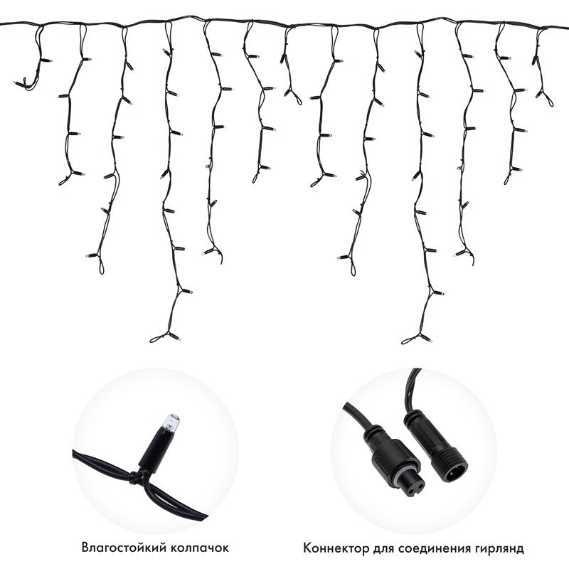 Важной оосбенностью данного исполнения является каучуковый провод, благодаря которому гирлянду отличает высокая надежность в условиях российского климата, даже в самых холодных регионах страны!