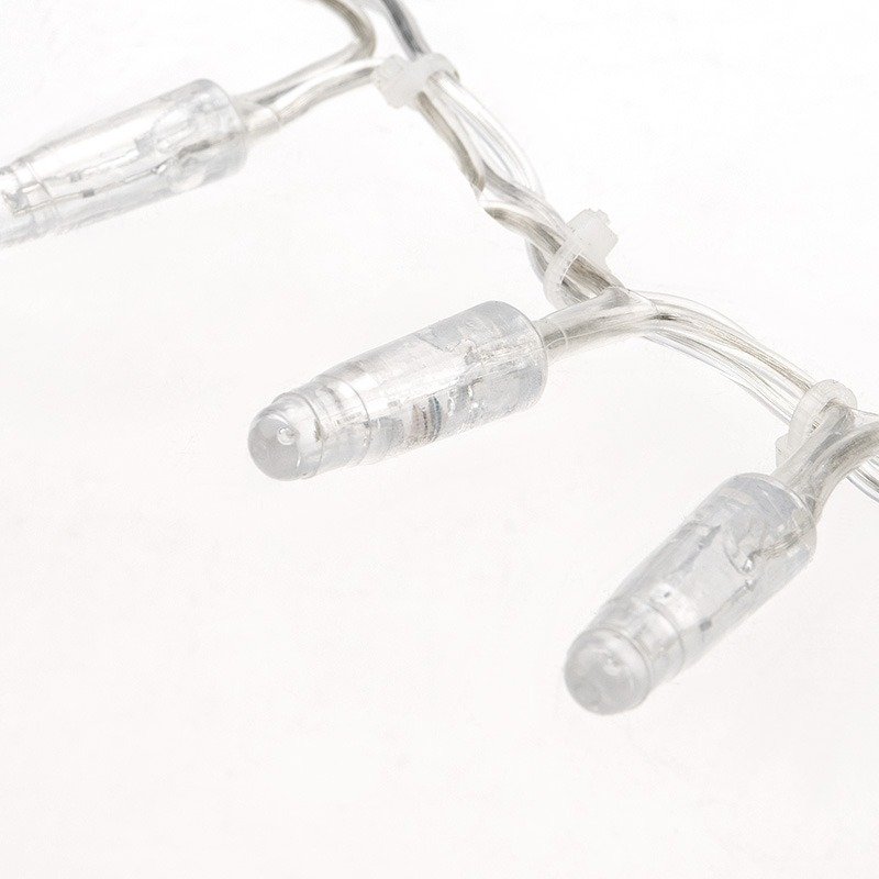 Данная гирлянда имеет длину 10 м, на которой равномерно расположено 200 диодов белого цвета свечения.