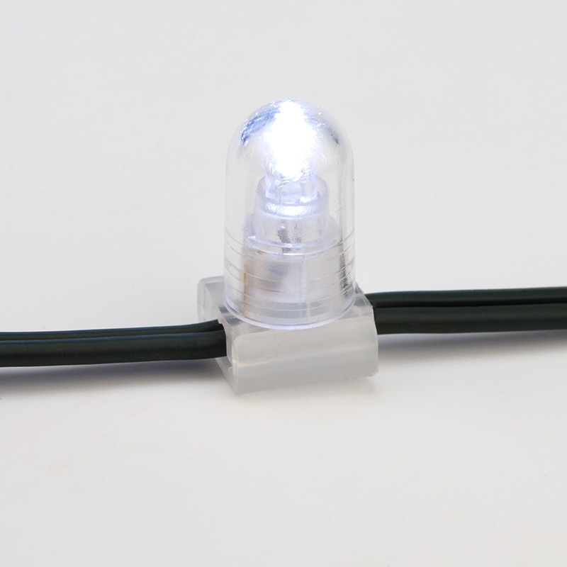 Данная гирлянда поставляется в бухтах по 100 м, представлена в белом цвете свечения светодиодов. Ее каждый 5 диод мерцает белым цветом.