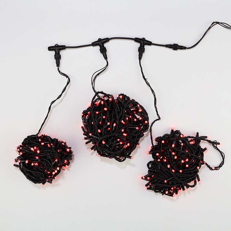 Данная гирлянда состоит из 3 нитей, представлена в красном цвете свечения светодиодов.