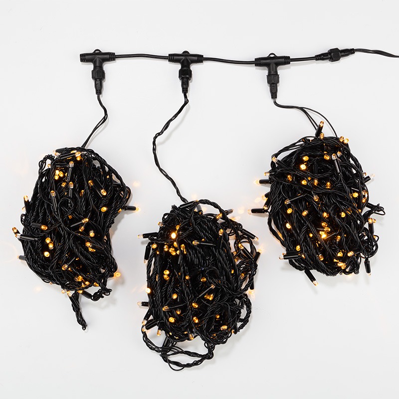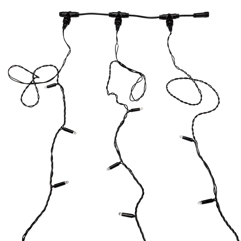 Данная гирлянда состоит из 3 нитей, представлена в желтом цвете свечения светодиодов.