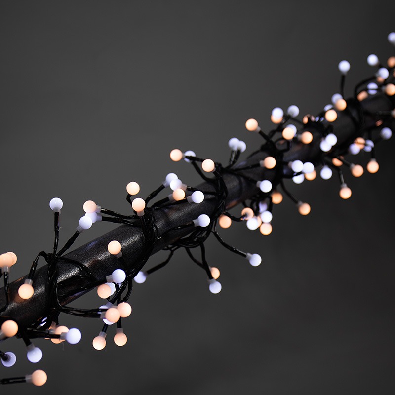Гирлянда «Мишура» длиной 3 метра эффектно украсит новогоднюю ель, подарит ощущение праздника и волшебства, создаст уют в доме и веселое настроение гостям. 288 светодиодов, помещенных в пластиковые шарики диаметром 1 см, излучают белый свет сразу двух оттенков — теплого и холодного. Провод в изоляции из ПВХ темно-зеленого цвета отлично маскируется среди веток, оставляя на виду только россыпь золотистых и серебристых огней. Гирлянды можно соединить в одно украшение длиной до 60 метров. Контроллер имеет 8 режимов и позволяет настроить динамику и цвет свечения в соответствии с настроением. Трехметровый питающий шнур избавляет от необходимости использовать удлинитель.