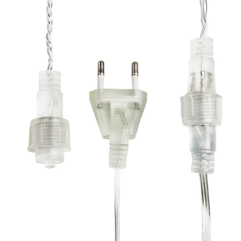 Гирлянда «Мишура» длиной 6 метров состоит из кабеля в изоляции из прозрачного ПВХ, на котором размещены короткие отводы со светодиодами. Конструкция имитирует елочную мишуру, создает эффектное объемное свечение. 576 диодов светятся яркими красными огнями, мягко подсвечивая еловые ветки. Можно соединить до 10 гирлянд и получить украшение нужной длины. Защита IP20 предполагает домашнее использование. Для переключения эффектов свечения предусмотрен удобный контроллер с 8 режимами. Питающий трехметровый шнур позволяет разместить гирлянду в любом удобном месте.