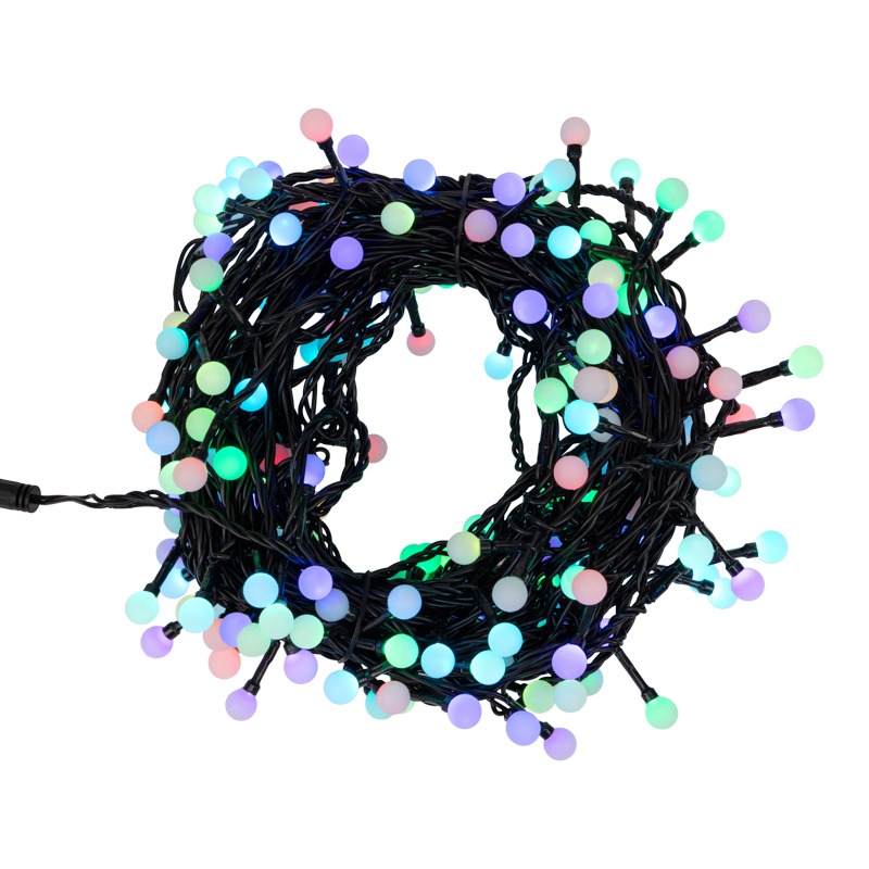 Гирлянда Мультишарики Ø13 мм, 20 м, черный ПВХ, 200 диодов, цвет RGB