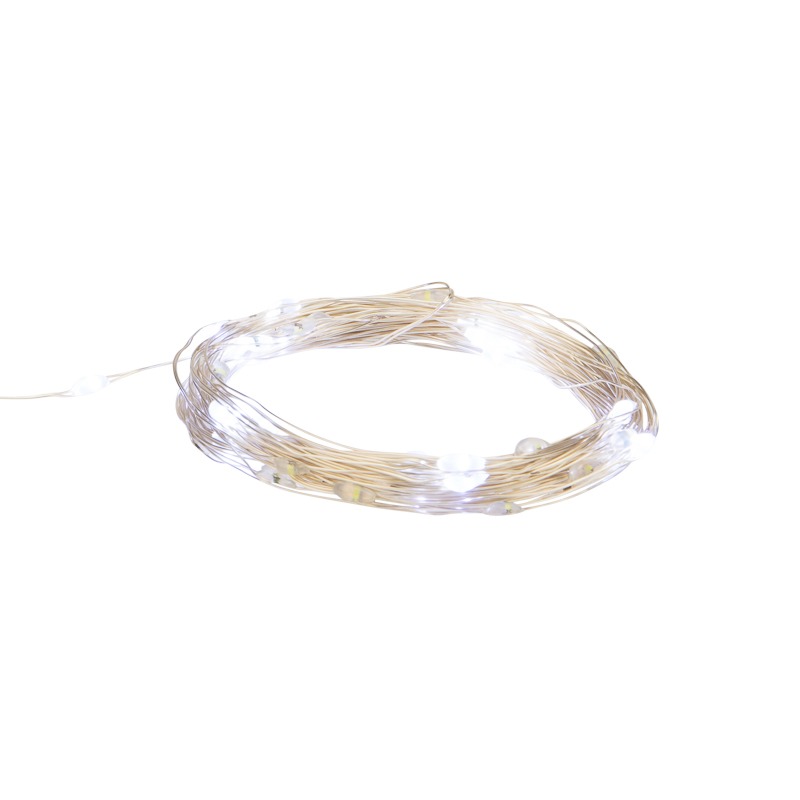 Гирлянда состоит из тонкого провода длиной 10 метров, с расположенными на нем 100 белыми долговечными светодиодами.