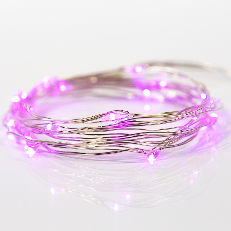 Гирлянда Роса, 2 м, 20 диодов, цвет розовый, тонкий батарейный блок