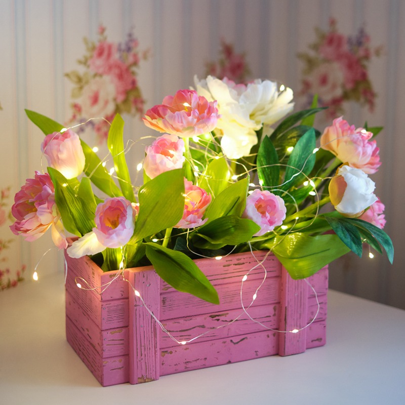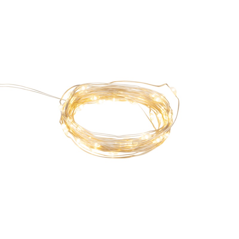 Гирлянда состоит из тонкого провода длиной 5 метров, с расположенными на нем 50 теплыми белыми долговечными светодиодами.
