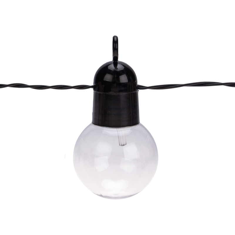 Черный провод и круглые лампочки создают уютное освещение, которое идеально подходит для создания теплой и расслабляющей обстановки.