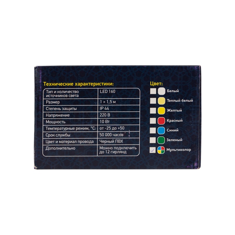 Гирлянда Сеть 1х1,5м, черный ПВХ, 160 LED Мультиколор