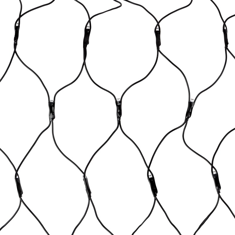 Гирлянда-сеть представляет из себя конструкцию в виде прямоугольника размером 1*1,5 метра, разбитого на равные ромбы, в углах которых находятся диоды красного, зеленого и синего цвета (RGB), причем диоды чередуются через один. Гирлянда имеет степень влагозащиты IP65 и ПВХ провод черного цвета, что позволит вам быстро и выгодно решить вопрос с декоративным украшением любых объектов как внутри помещения, так и снаружи. В комплекте идет контроллер с 8 режимами свечения, что позволяет гирлянде работать в динамике. Данная гирлянда используется для украшения фасадов и потолков зданий практически любой площади, отлично подходит для украшения небольших кустов, растяжки между направляющими в беседке или веранде, ей можно легко и быстро обмотать колонны или столбы, служит красивым декором окон зданий. Гирлянда-сеть имеет самое лучшее отношение цены к площади декорирования относительно других гирлянд, что делает ее уникальной в своем роде.