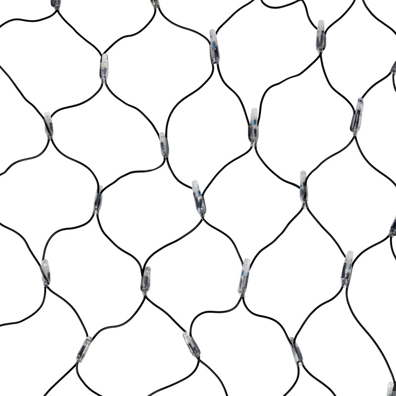 Гирлянда-сеть представляет из себя конструкцию в виде прямоугольника размером 2*0,7 метра, разбитого на равные ромбы, в углах которых находятся диоды белого и синего цвета, причем диоды чередуются по линии. Гирлянда имеет степень влагозащиты IP44 и ПВХ провод черного цвета, что позволит вам быстро и выгодно решить вопрос с декоративным украшением любых объектов как внутри помещения, так и снаружи. В комплекте идет контроллер с 8 режимами свечения, что позволяет гирлянде работать в динамике. Данная гирлянда используется для украшения фасадов и потолков зданий практически любой площади, отлично подходит для украшения небольших кустов, растяжки между направляющими в беседке или веранде, ей можно легко и быстро обмотать колонны или столбы, служит красивым декором окон зданий. Гирлянда-сеть имеет самое лучшее отношение цены к площади декорирования относительно других гирлянд, что делает ее уникальной в своем роде.