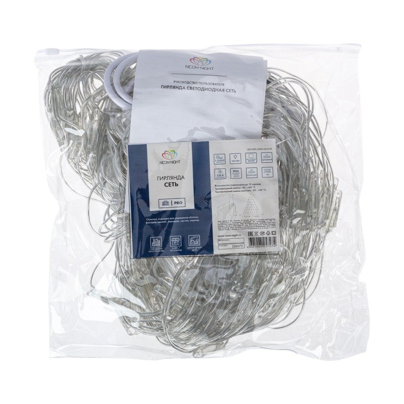 Гирлянда Сеть 2х2х1.5 м, свечение с динамикой, прозрачный ПВХ, 136 LED, 230 В, цвет свечения белый