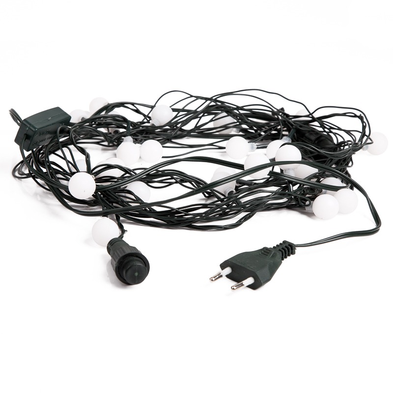 Гирлянда «Мультишарики» длиной 5 метров представляет собой электрический провод в изоляционной оболочке из темно-зеленого ПВХ, на котором равномерно размещены яркие светодиоды с несъемными насадками в виде шариков с диаметром 15 мм. Элементы выполнены из матового пластика. 30 диодов светятся разными цветами в режиме хаотичной смены оттенков — всего 256 вариантов. Гирлянда идеально подходит для оформления елок и создания декоративной подсветки в интерьере. Длина питающего шнура 3 метра — удлинитель не понадобится. Можно соединить последовательно до 6 аналогичных гирлянд с помощью штекера на конце кабеля.