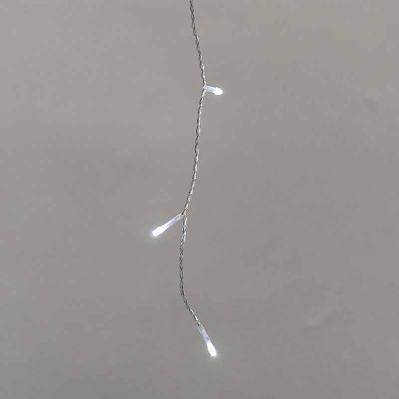 Светодиодная гирлянда Айсикл (Бахрома) представляет собой горизонтальный провод 25 м, на котором располагаются вертикальные нити разной длины от 30 до 60 см. Благодаря своей форме гирлянда оптимально подходит для оформления гардин, ниш, открытых проемов между комнатами, а также крыш, навесов, перил и других элементов зданий и ограждений. <br> Степень защиты IP44 позволяет использовать гирлянду как на открытом воздухе под навесом, так и внутри помещений. <br> На каждой нити располагаются светодиоды, создающие эффект сверкающих сосулек. Цвет свечения – белый.<br> Прозрачный провод изделия делает светящиеся линии более выразительными и образует гармоничную яркую композицию.<br> Особенностью гирлянды является эффект мерцания, который добавляет динамики и создает магическую атмосферу.