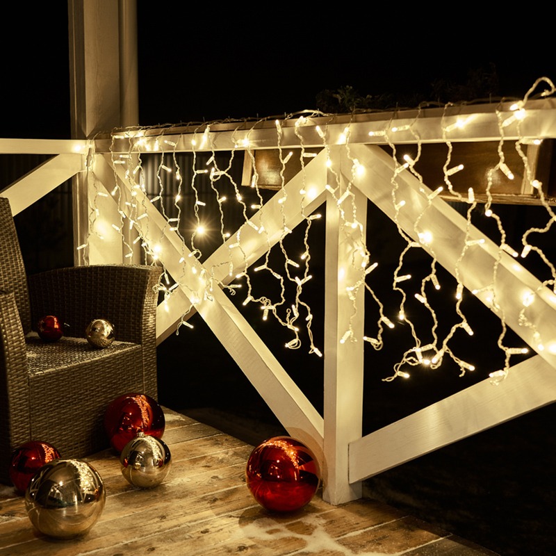 Гирлянда светодиодная Занавес (Дождь), 2х0,8м, 160 LED ТЕПЛЫЙ БЕЛЫЙ, прозрачный ПВХ, IP65, эффект мерцания, 230В, соединяется (нужен шнур питания 303-500-1)