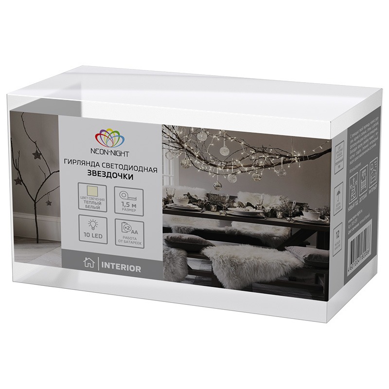 Светодиодная гирлянда «Прищепки» работает от 2 батареек типа АА, не нуждается в подключении к электрической сети через розетку и является абсолютно безопасной в использовании. Этот параметр делает украшение мобильным и открывает широкий спектр возможностей для создания светового декора. Гирлянда выполнена в виде шнура длиной 1,6 метра с батарейным блоком на конце. 10 диодов теплого белого свечения находятся на одинаковом расстоянии друг от друга. Каждый элемент имеет отдельную прищепку, на них можно разместить лбюимые фото или постеры и повесить гирлянду в выбранное место. Конструкция защищена по стандарту IP20 и предназначена для использования в помещениях с низкой влажностью.