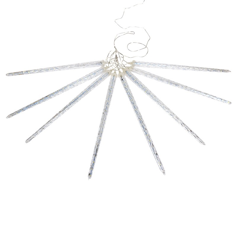 Светодиодная гирлянда «Сосульки» станет великолепным украшением интерьера: гармонично дополнит карниз, гардину, дверной проем, различные элементы мебели и внесет атмосферу зимней сказки в ваш дом. На серебристом проводе располагаются 8 прозрачных трубок из ПВХ, внешне напоминающие сосульки, внутри которых находится плата с маленькими диодами белого свечения. Микрочип обеспечивает светодинамический эффект стекающей капли. Гирлянда с защитой IP20 работает от сети 230 Вольт, подходит для использования в помещениях. Для подключения в розетку предусмотрен питающий шнур длиной 1.5 метра.