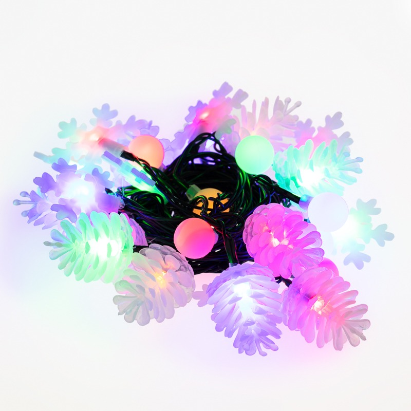 Гирлянда светодиодная универсальная с насадками (шарики, снежинки, елочки) 30 LED МУЛЬТИКОЛОР, 4,4 метра с контроллером