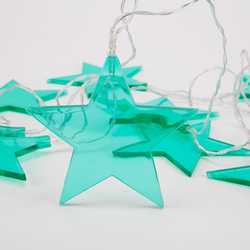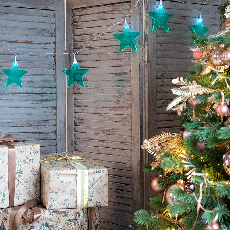 Светодиодная гирлянда «Звездопад» длиной 2,25 метра предоставляет безграничные возможности в области создания светового декора интерьера благодаря мобильности: изделие не требует подключения к розетке, поскольку питается от двух батареек типа АА и является абсолютно безопасным в использовании. На проводе с изоляцией из прозрачного ПВХ расположены 10 бирюзовых звезд, подсвечиваемых белыми диодами. Стильное, современное, безопасное украшение гармонично дополнит обстановку детской, спальни, гостиной, офиса.
